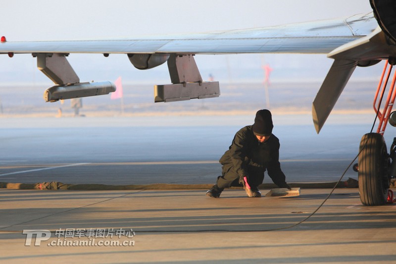 2013年1月6日,空軍華北機(jī)場(chǎng)某航空兵師在這一天新年首飛。在進(jìn)行了兩天的充分準(zhǔn)備之后,機(jī)務(wù)人員在早晨6點(diǎn)30分就準(zhǔn)時(shí)來到外場(chǎng)。上午9點(diǎn)整,數(shù)架殲十戰(zhàn)機(jī)準(zhǔn)時(shí)升空,開始了一天的訓(xùn)練。記者在外場(chǎng)有幸記錄下這冬日陽光里精彩的飛行場(chǎng)景。(來源:中國(guó)軍網(wǎng) 苑小偉攝影報(bào)道)