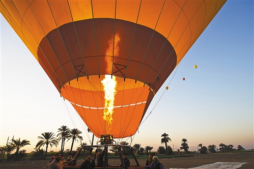2012年2月20日在埃及盧克索拍攝的熱氣球著陸的資料照片。