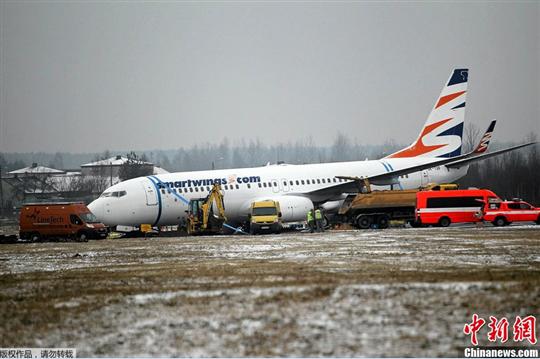 13日波蘭一架波音737客機降落后滑出跑道