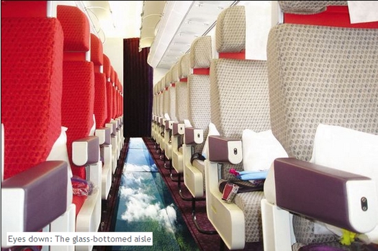 據(jù)英國《每日鏡報》4月1日報道,為了讓乘客真正體會在空中旅行的感覺,英國維珍航空公司推出的新式噴氣機(jī)安裝有玻璃地板,讓飛行途中的乘客低頭便可將天空一覽無遺,真正體會“在空中行走”的感受。