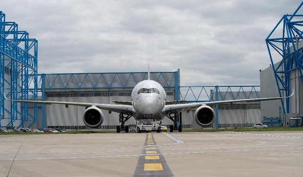 首架用于飛行測(cè)試的空客A350XWB寬體飛機(jī)日前在法國(guó)圖盧茲完成整體噴漆,這標(biāo)志著空客這一新型飛機(jī)又向預(yù)定今年夏季的首次飛行邁進(jìn)一步。