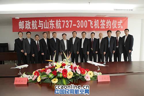 2013年4月28日上午,中國郵政航空有限責(zé)任公司(簡稱“郵航”)與山 東航空股份有限公司(簡稱“ 山航”)簽訂五架波音737飛機(jī)的購買協(xié)議。郵航李玉峰總經(jīng)理和山航于海田總經(jīng)理分別代表雙方簽字,郵航胡曉光總會(huì)計(jì)師、王超總工程師出席簽字儀式。