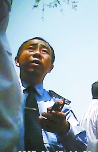 第一個趕到現(xiàn)場搶救傷者的他正在向領(lǐng)導(dǎo)匯報當(dāng)時的情況。記者 陶剛 攝