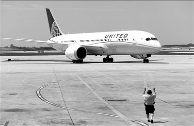 當?shù)貢r間5月20日,美國芝加哥,美國聯(lián)合航空公司旗下一架波音787夢想客機準備從休斯敦飛抵芝加哥。圖/CFP