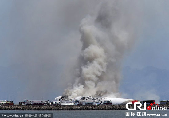 當(dāng)?shù)貢r(shí)間2013年7月6日,韓亞OZ214航班在美國(guó)舊金山機(jī)場(chǎng)降落時(shí)墜毀。圖片來(lái)源:CFP/John Green