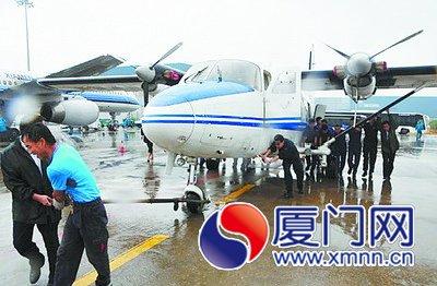 受“西馬侖”影響,這架固定翼飛機(jī)被轉(zhuǎn)移至廈門機(jī)場(chǎng)附近的太古機(jī)庫(kù),待風(fēng)雨過(guò)后,再回到停機(jī)位值班待命。從太古機(jī)庫(kù)到停機(jī)位有一段一百多米的斜坡,因?yàn)闋恳噳牧,只好調(diào)來(lái)20名小伙子人工“推”飛機(jī)。(記者 曾嫣艷 通訊員 劉匯)