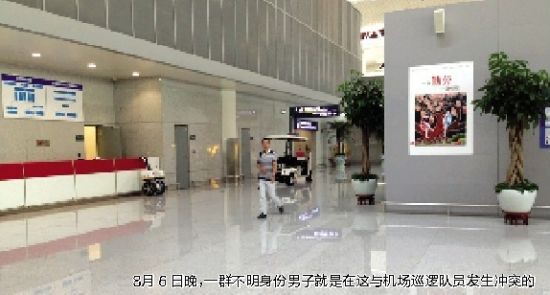 8月6日晚10點半左右,又有一幫不明身份男子,沖進新橋機場航站樓,“在里面肆意抽煙、拉客”,態(tài)度囂張,人數(shù)有一二十人之眾。這次遭遇機場治安巡邏隊員勸阻時,對方竟直接動手,毆打巡邏隊員,致使多人受傷。