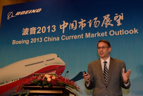 波音民用飛機集團市場營銷副總裁蘭迪?廷塞斯波發(fā)布2013年中國市場展望。波音供圖