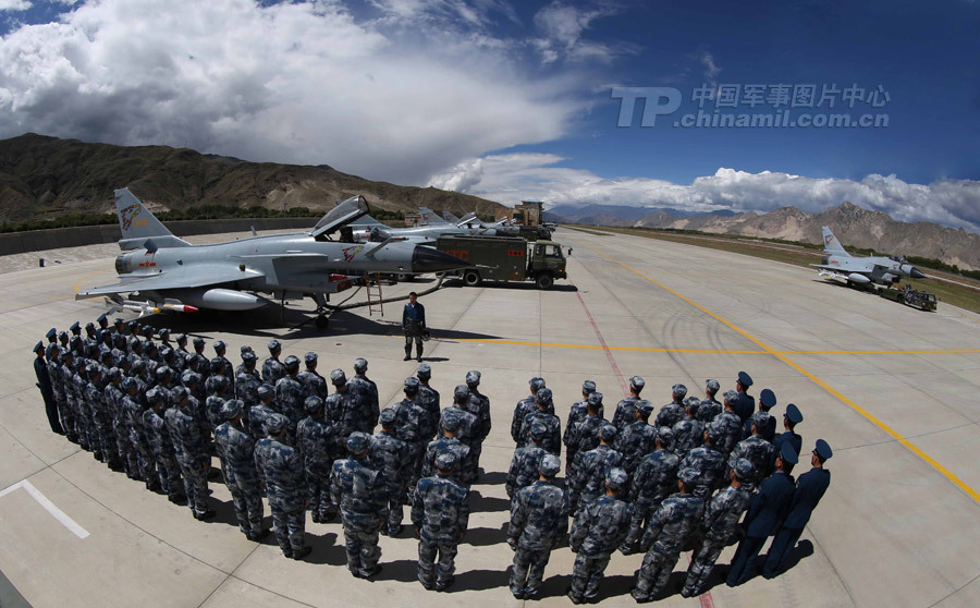 9月10日20時55分,空軍首批入藏新兵從成都乘列車奔赴雪域高原,記者隨同入藏一周,用鏡頭記錄新兵入營過程。圖為9月13日下午,入營第二課,現(xiàn)場觀摩雪域高原航空兵戰(zhàn)備值班,強化打仗意識,培養(yǎng)軍人血性。特約記者劉應(yīng)華 攝