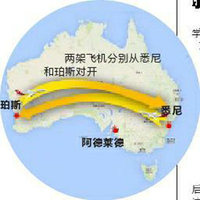 20日12時,兩架分別從澳大利亞悉尼和珀斯市對開的A330空客正好經(jīng)過阿德萊德以西19公里的上空。
