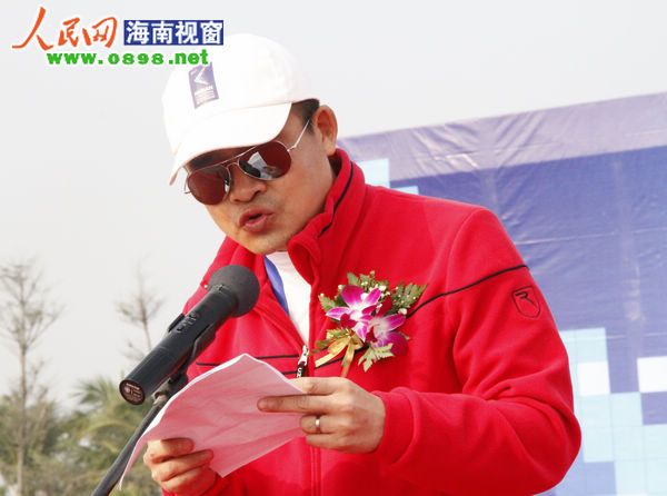 國家體育總局航管中心副主任張露新在環(huán)島飛行拉力賽三亞賽段的開幕式上致辭