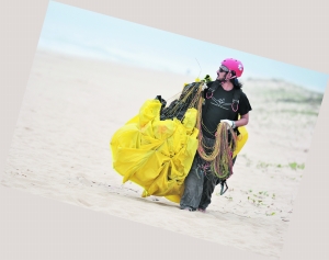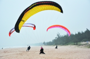 這是一群“斗傘”的人,從他們的如小麥般的膚色不難看出他們對(duì)于陽光和沙灘的熱愛,他們手中的滑翔傘在海風(fēng)中像撐滿了的帆,似乎稍一放松,它就會(huì)帶著操縱者乘著風(fēng)向天邊飛去,地上的操縱者則像在與大自然較量,他們把身體重心放到最低,幾乎都要坐在甚至躺在沙灘上。