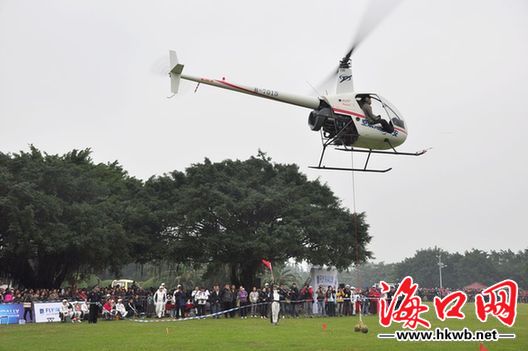 12月17日,2011中國首屆環(huán)海南島飛行拉力賽在?谂e行;顒蝇F(xiàn)場規(guī)模空前,扣人心弦,精彩紛呈。據(jù)悉,本次飛行拉力賽至本月30日止。圖為直升機(jī)定位“投籃”賽現(xiàn)場。