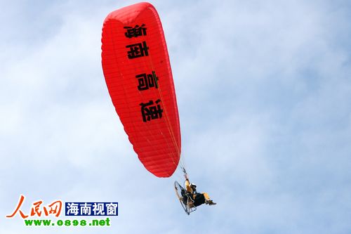 21日上午8點左右,經(jīng)過一天的休整,2011環(huán)海南島飛行拉力賽東方段在東方市邊貿(mào)城正式開幕。比起前幾日的大風(fēng)天氣,今天的風(fēng)速明顯減弱,在?谖茨芘c廣大市民和游客見面的熱氣球、動力傘、動力三角翼今天也終于如愿升空,在東方的碧海藍天間盡情的翱翔。大批東方市民趕到現(xiàn)場,一幕幕精彩的飛行表演引得現(xiàn)場尖叫連連、掌聲不斷。
