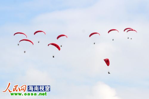 21日上午8點(diǎn)左右,經(jīng)過一天的休整,2011環(huán)海南島飛行拉力賽東方段在東方市邊貿(mào)城正式開幕。比起前幾日的大風(fēng)天氣,今天的風(fēng)速明顯減弱,在海口未能與廣大市民和游客見面的熱氣球、動力傘、動力三角翼今天也終于如愿升空,在東方的碧海藍(lán)天間盡情的翱翔。大批東方市民趕到現(xiàn)場,一幕幕精彩的飛行表演引得現(xiàn)場尖叫連連、掌聲不斷。