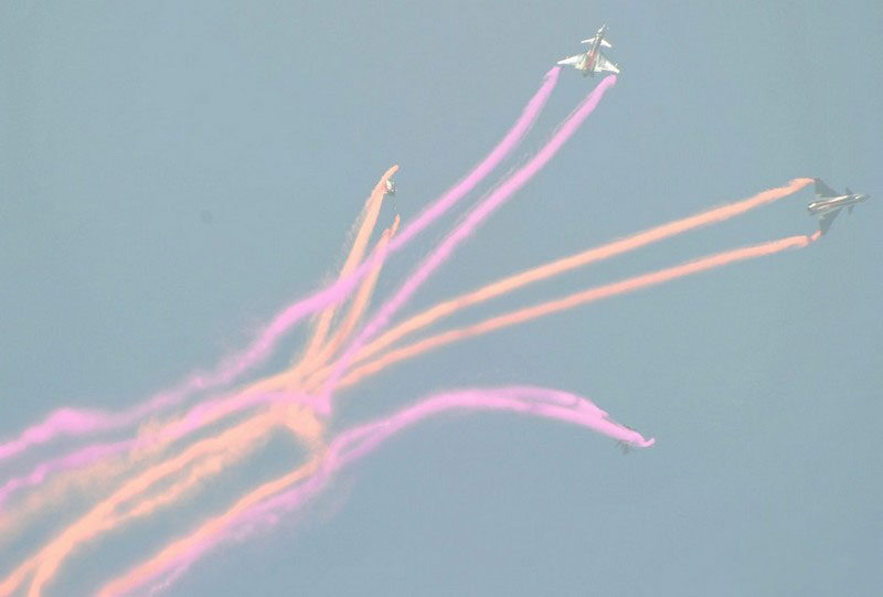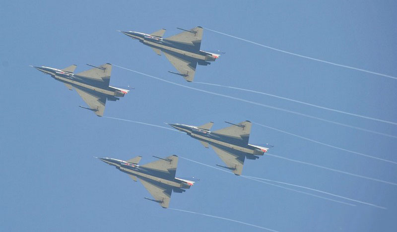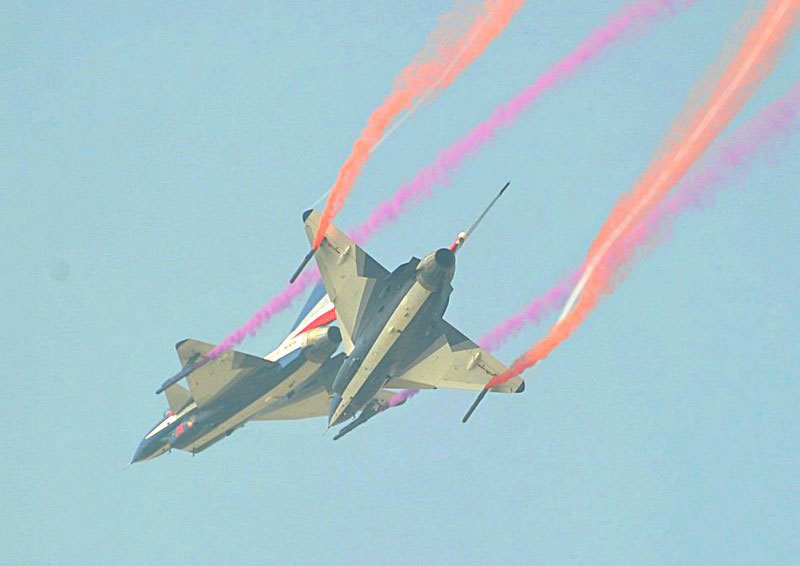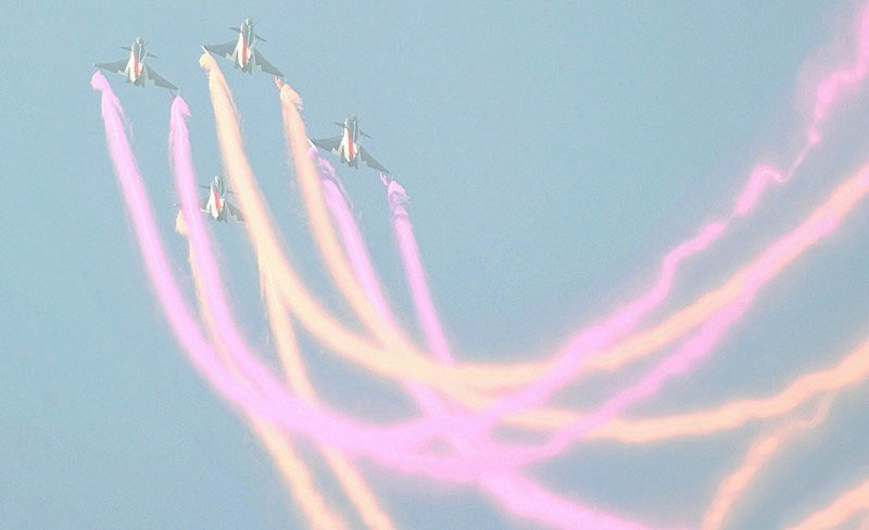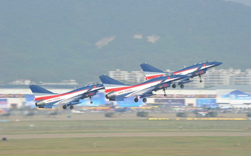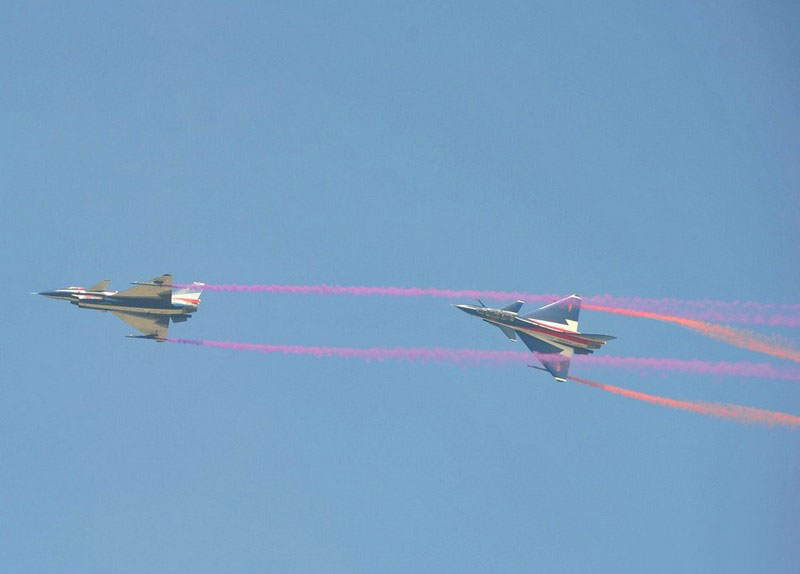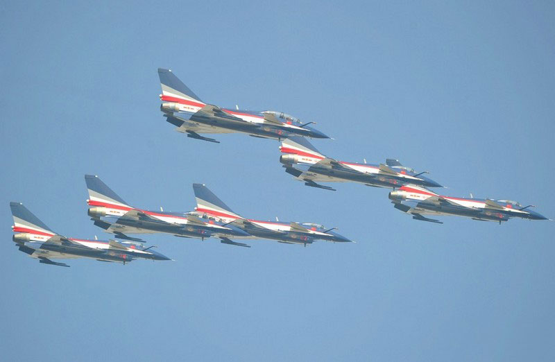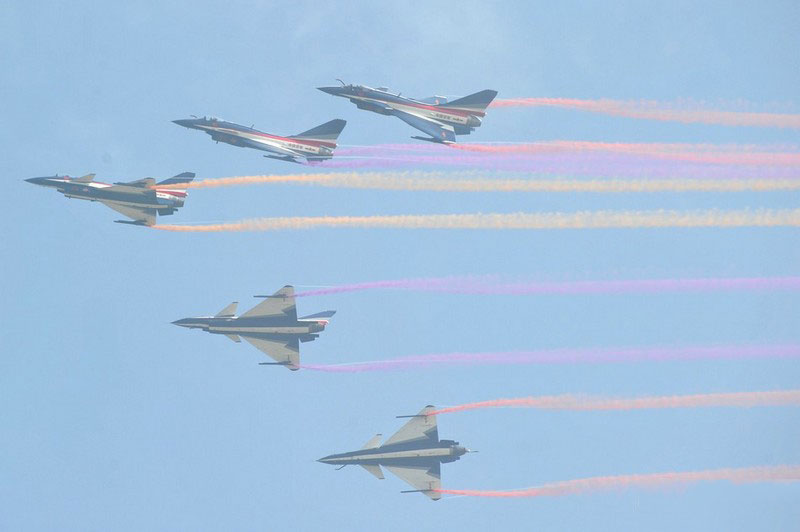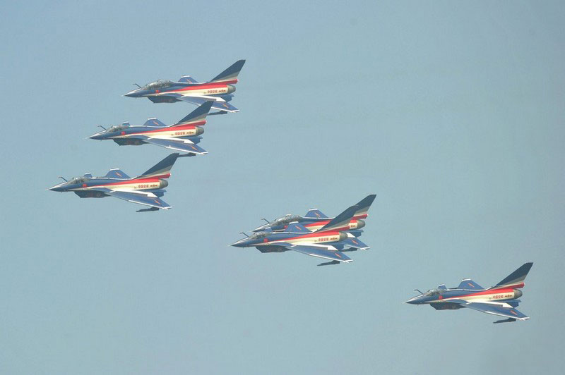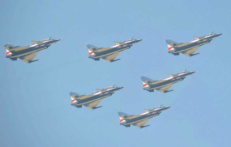 【環(huán)球網(wǎng)赴珠海航展特派報道組綜合報道】第九屆中國國際航空航天博覽會(珠海航展2012)將于11月13日-18日在廣東省珠海市金灣區(qū)三灶鎮(zhèn)隆重舉行。開展當(dāng)日,中國空軍八一飛行表演隊的6架殲-10戰(zhàn)機(jī)翱翔藍(lán)天,漫步云端。