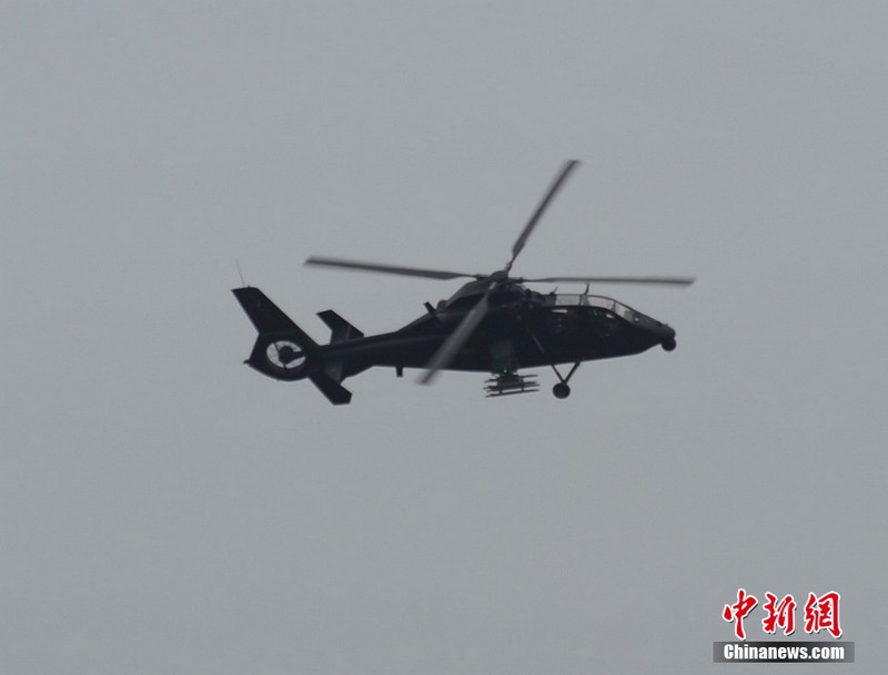 中新網(wǎng)珠海11月11日電(陳海峰) 中國(guó)陸航直19武裝直升機(jī)11日在珠海航展上空進(jìn)行了精彩的飛行表演。