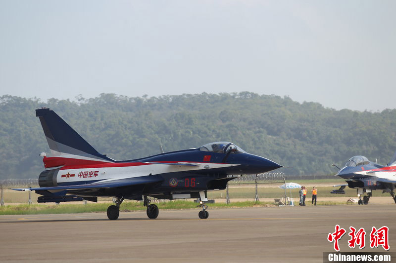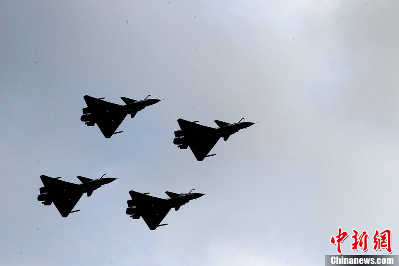 2012年11月10日,廣東省珠海市,八一飛行表演隊(duì)殲十戰(zhàn)機(jī)做編隊(duì)飛行練習(xí)。八一飛行表演隊(duì)將在珠海航展上做精彩編隊(duì)飛行表演。