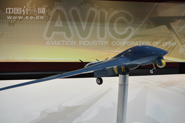 中航工業(yè)比例為1:6的鷂鷹Ⅲ無(wú)人機(jī),該機(jī)型將亮相珠海航展。中國(guó)經(jīng)濟(jì)網(wǎng)記者 段丹峰 攝
