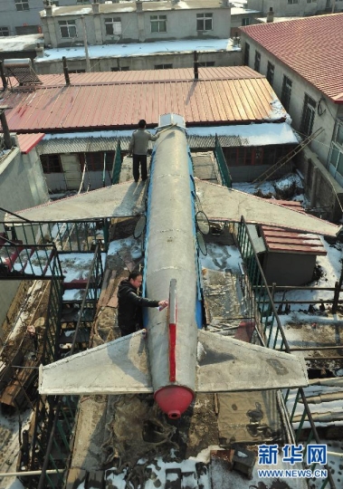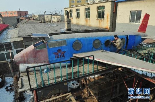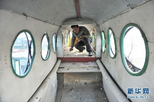 目前,遼寧沈陽市長白鄉(xiāng)58歲農(nóng)民李晶純用時(shí)2年制作的“大型客機(jī)”已初見雛形,進(jìn)入內(nèi)飾安裝階段。據(jù)李晶純介紹,制作這架“大型客機(jī)”是為了圓其兒時(shí)成為一名飛行員的夢想。制作飛機(jī)的材料多數(shù)是買來的廢棄鋼材,由他自己焊接而成。機(jī)身長約5米,機(jī)翼寬約4米,重達(dá)1噸,總共花費(fèi)約4萬余元。
