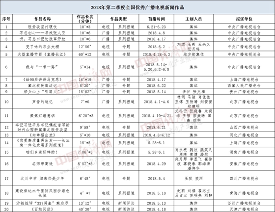 2018年二季度全國優(yōu)秀廣播電視新聞作品