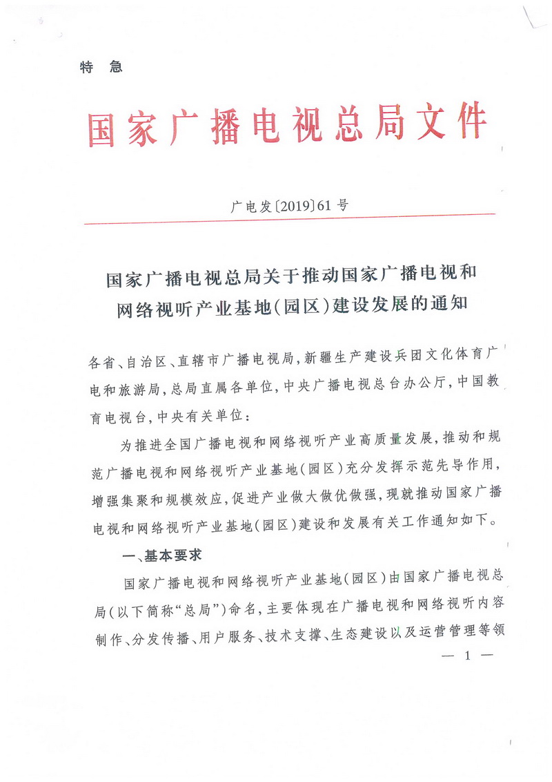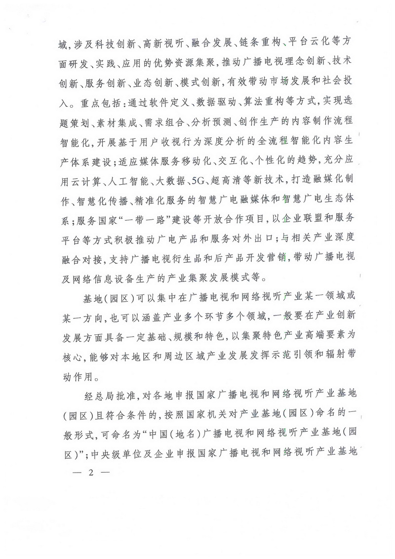 國家廣播電視總局關(guān)于推動國家廣播電視和網(wǎng)絡(luò)視聽產(chǎn)業(yè)基地(園區(qū))建設(shè)發(fā)展的通知