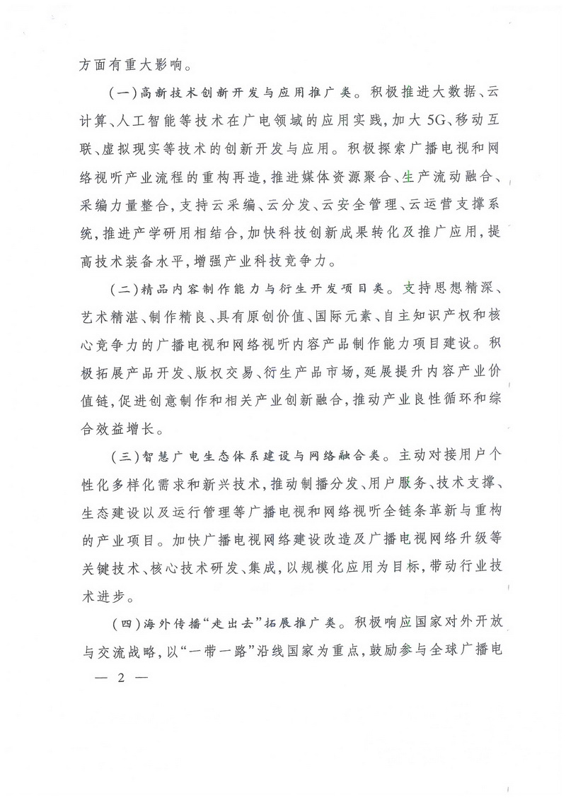 ?。ㄎ澹┢渌麑?duì)廣播電視和網(wǎng)絡(luò)視聽產(chǎn)業(yè)發(fā)展有重要影響和促進(jìn)作用的項(xiàng)目。