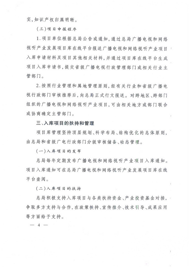 為做好廣播電視和網(wǎng)絡(luò)視聽產(chǎn)業(yè)發(fā)展項(xiàng)目庫的建立、申報(bào)、扶持和管理等工作,總局將盡快制定具體申報(bào)要求、申報(bào)時(shí)限和項(xiàng)目庫在線平臺(tái)操作指南,有關(guān)內(nèi)容另行通知。