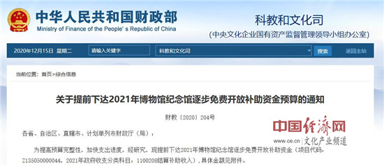 經(jīng)濟(jì)日?qǐng)?bào)-中國(guó)經(jīng)濟(jì)網(wǎng)北京12月15日訊 近日,財(cái)政部官網(wǎng)發(fā)布了《關(guān)于提前下達(dá)2021年博物館紀(jì)念館逐步免費(fèi)開(kāi)放補(bǔ)助資金預(yù)算的通知》,31個(gè)?。ㄗ灾螀^(qū)、直轄市)及5個(gè)計(jì)劃單列市補(bǔ)助資金預(yù)算總計(jì)277605萬(wàn)元。