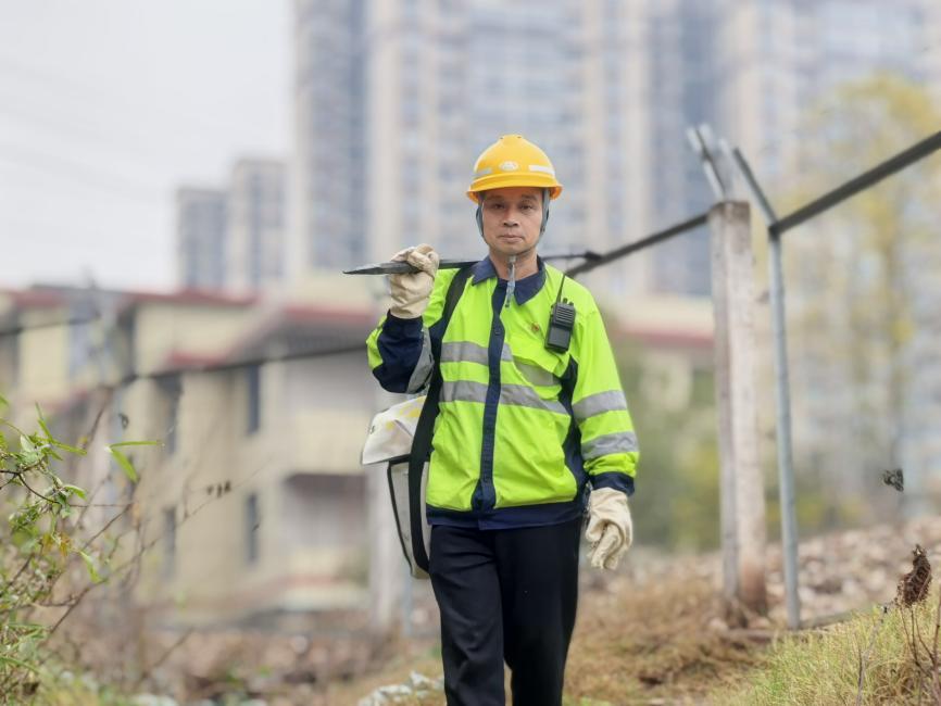 他不茍言笑,纖瘦的身材裹在洗得發(fā)舊的工作服里,顯得精干而有力。長年在戶外勞作,他的皮膚被曬得黝黑,像一截沉默的鐵軌。只有湊近了看,才會發(fā)現他兩鬢的頭發(fā)已經泛起了一絲蒼白,像是清晨落在黑色枕木上的霜。他的戰(zhàn)場,是湘桂線3公里800米至147公里600米這一段線路。整整144公里,跨越13個區(qū)間。路基維修、柵欄修補、施工管理,那些冰冷的混凝土、堅硬的石砟、綿延到天邊的鋼軌,構成了他全部的工作日常。別人眼里的枯燥和艱苦,于他而言,是日復一日的守護。