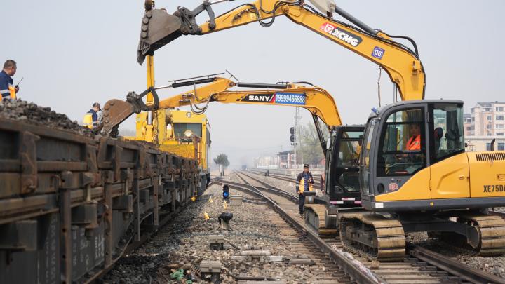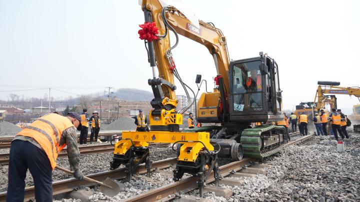 為縮短施工時間,提高施工進度,12時30分,三臺鉤機相互配合回填石砟,搗固機隨即進行精準搗固,快速恢復道床密實度與軌道幾何尺寸。