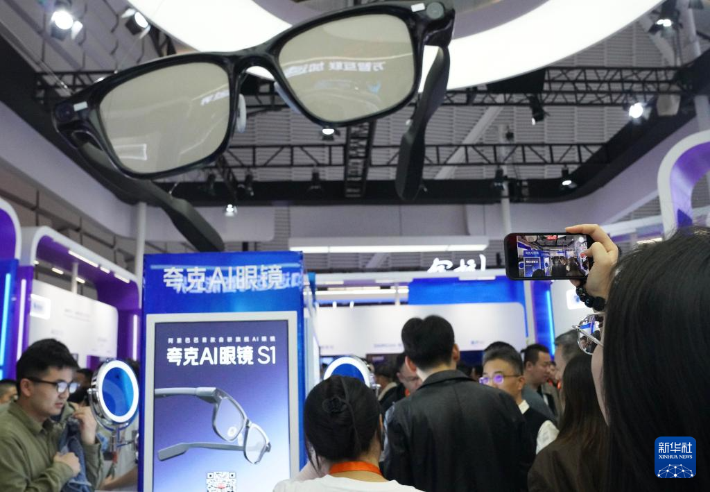 11月6日,觀眾在2025年世界互聯(lián)網(wǎng)大會“互聯(lián)網(wǎng)之光”博覽會現(xiàn)場的AI眼鏡展臺參觀拍照。新華社記者 劉瓊 攝