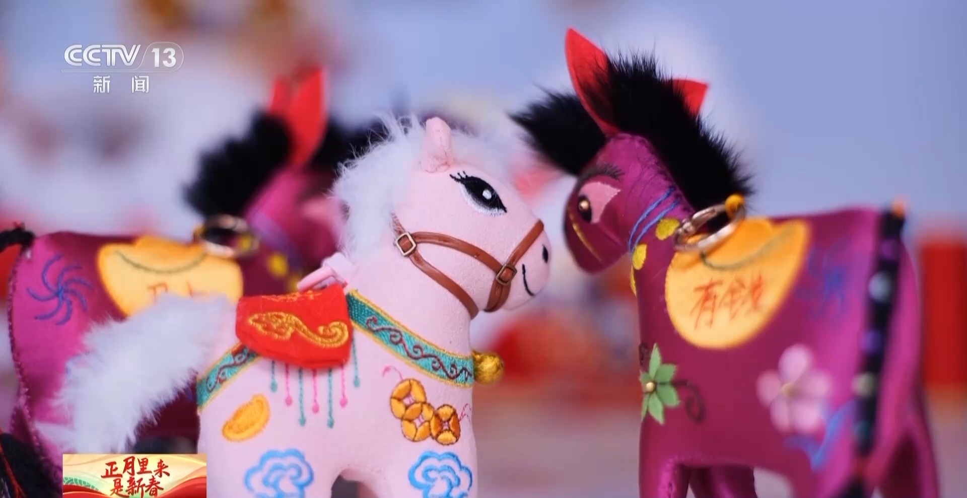 今年受歡迎的不只是馬社火的袍服,就連巡游的駿馬都被做成非??蓯?ài)的掛飾,成為爆款。小馬掛飾身上的刺繡花紋和袍服上的繡法同出一脈,都是源自傳承千年的國(guó)家級(jí)非遺——西秦刺繡。這是一門(mén)源于生活、代代相傳的老手藝。