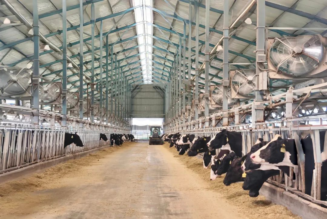 自動感應(yīng)風(fēng)機、精準(zhǔn)噴淋裝置等智能設(shè)備隨環(huán)境自動調(diào)節(jié),為奶牛打造舒適家園,確保每一滴牛奶源自健康奶牛。