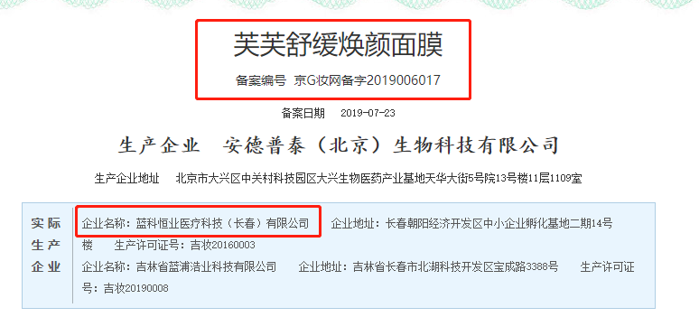記者了解到,藍(lán)科恒業(yè)醫(yī)療科技(長(zhǎng)春)有限公司是芙芙舒緩煥顏面膜、芙芙深澈潤(rùn)顏面膜、芙芙抑痘凈顏面膜、芙芙清痘復(fù)顏面膜等產(chǎn)品的生產(chǎn)企業(yè)。其中芙芙舒緩煥顏面膜在網(wǎng)購(gòu)平臺(tái)上芙芙官方旗艦店總銷(xiāo)售量達(dá)54萬(wàn)。