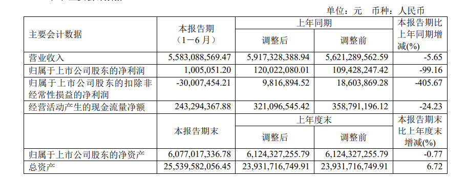 8月25日,華北制藥披露《2021年半年報(bào)》,公司營收凈利雙雙下降。其中,實(shí)現(xiàn)營收558308.86萬元,同比降低5.65%;歸屬于上市公司股東的凈利潤為100.51萬元,同比降低99.16%;歸屬于上市公司股東的扣除非經(jīng)常性損益的凈利潤為-3000.75萬元,虧損同比擴(kuò)大405.67%;經(jīng)營活動(dòng)產(chǎn)生的現(xiàn)金流量?jī)纛~為24329.44萬元,同比下降24.23%。