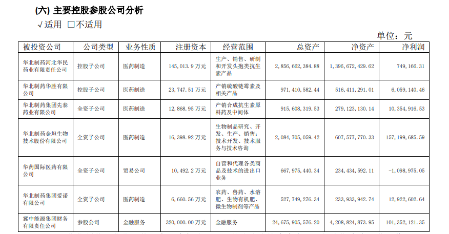 具體來看,參股子公司華北制藥河北華民藥業(yè)有限責(zé)任公司主營頭孢類抗生素產(chǎn)品。報(bào)告期內(nèi),其實(shí)現(xiàn)營業(yè)收入54673萬元,同比降低23795萬元,降低30.32%;實(shí)現(xiàn)主營業(yè)務(wù)利潤12237萬元,毛利率同比降低14.23%。