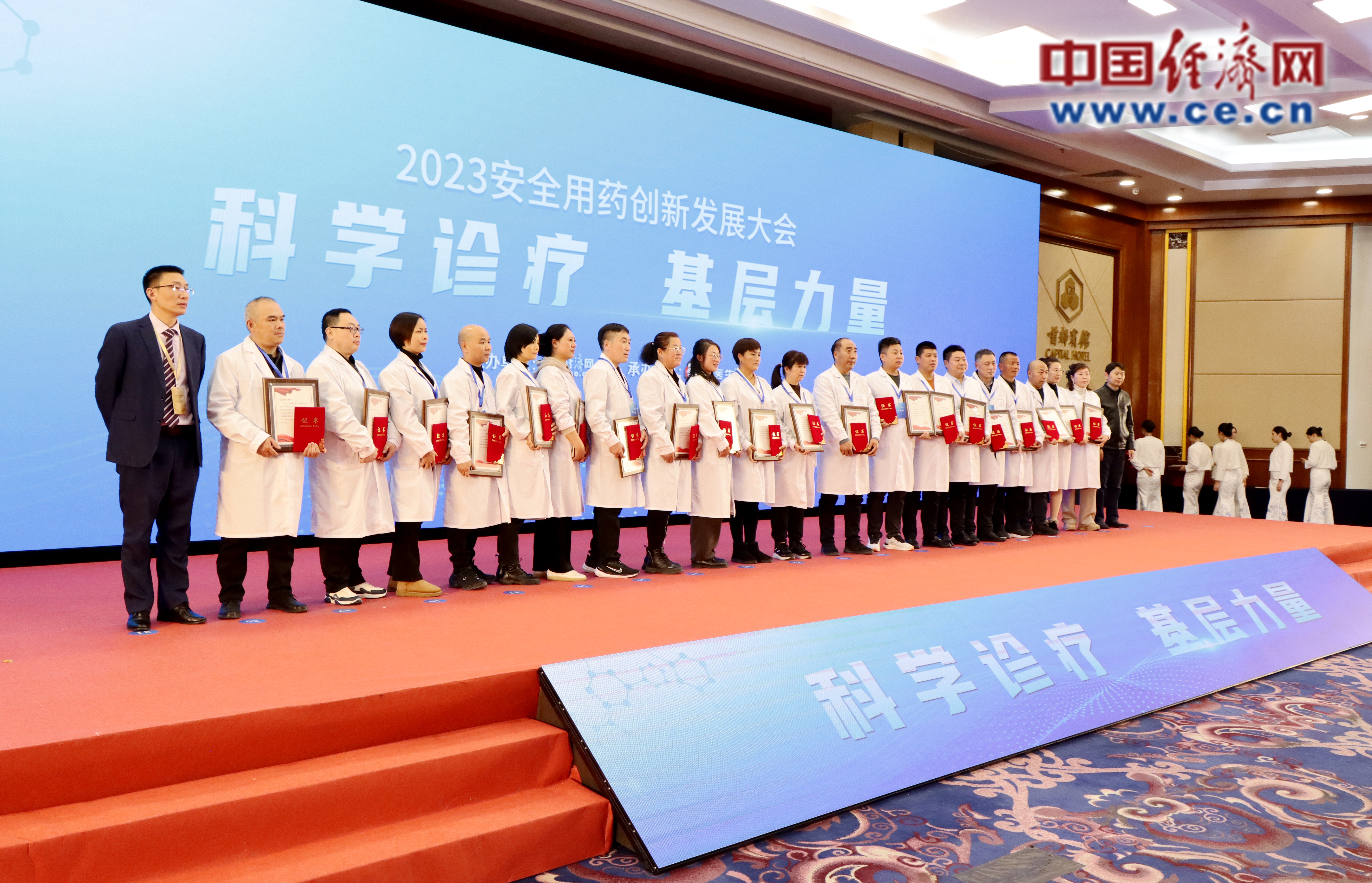 圖為“基層科學(xué)診療安全用藥”分論壇現(xiàn)場,向基層醫(yī)師藥師代表頒發(fā)感謝信致敬。中國經(jīng)濟(jì)網(wǎng)記者 李凡/攝影