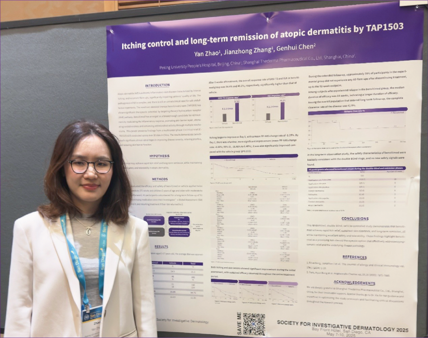 2025年第82屆美國(guó)皮膚病研究學(xué)會(huì)年會(huì)(SID)于5月7日至10日在美國(guó)圣地亞哥舉行,來自北京大學(xué)人民醫(yī)院趙琰教授關(guān)于澤立美本維莫德乳膏治療特應(yīng)性皮炎的確證性臨床研究數(shù)據(jù)重磅亮相本次年會(huì)。這是首個(gè)且唯一針對(duì)中國(guó)人群的研究,展示了澤立美本維莫德乳膏在速效止癢、療效持久及安全性方面的顯著優(yōu)勢(shì)。