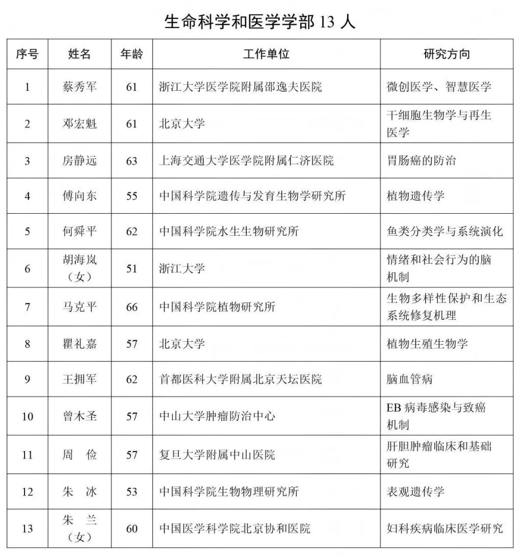 中國科學院選舉產生了73名中國科學院院士和27名中國科學院外籍院士,其中生命科學和醫(yī)學學部13人。