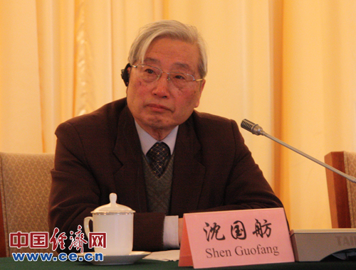由國(guó)務(wù)院發(fā)展研究中心主辦、中國(guó)發(fā)展研究基金會(huì)承辦的主題為“中國(guó):改革開(kāi)放與全面建成小康社會(huì)”的中國(guó)發(fā)展高層論壇2013年會(huì)23日-25日在北京釣魚(yú)臺(tái)國(guó)賓館舉行。中國(guó)經(jīng)濟(jì)網(wǎng)全程直播報(bào)道。圖為中國(guó)國(guó)際環(huán)境與發(fā)展國(guó)際合作委員會(huì)中方首席顧問(wèn)、中國(guó)工程院前副院長(zhǎng)沈國(guó)舫演講。中國(guó)經(jīng)濟(jì)網(wǎng)王婉瑩 攝影