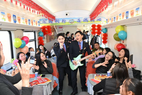K2623次“濱疆號”列車是連接“北方明珠”大連與“東亞之窗”滿洲里的重要紐帶,縱貫沈陽、長春、哈爾濱、海拉爾等多座城市,不僅承載著旅客團圓的期盼,也促進著兩地文化交融與情感相連。春運首日,列車長劉森與乘警丁非凡共同主持活動,生動闡釋“濱疆同行、連滿同心”的服務(wù)理念,讓旅客在旅途中深切感受列車文化與鐵路人的暖心相伴。
