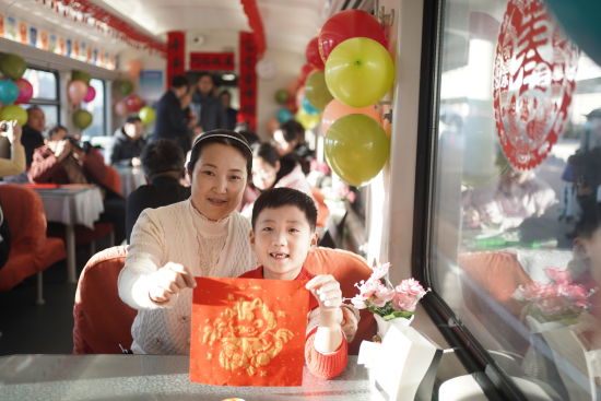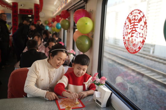 趣味互動與安全科普并行,讓旅途安心亦有趣。活動圍繞鐵路乘車常識與反詐知識設(shè)置兩輪有獎問答,內(nèi)容涵蓋12306購票流程、兒童票新規(guī)、電信詐騙防范等實用話題。旅客踴躍參與,答對者均獲贈列車準(zhǔn)備的精美紀(jì)念品。乘警結(jié)合題目現(xiàn)場剖析詐騙手法與出行隱患,助力旅客筑牢安全意識。列車還為小朋友準(zhǔn)備了非遺剪紙和拓印福字體驗,孩子們在動手創(chuàng)作中感受傳統(tǒng)年味,一幅幅紅艷剪紙、一張張飽滿“?!弊?,點亮了車廂,也傳遞出新春的美好祝愿。